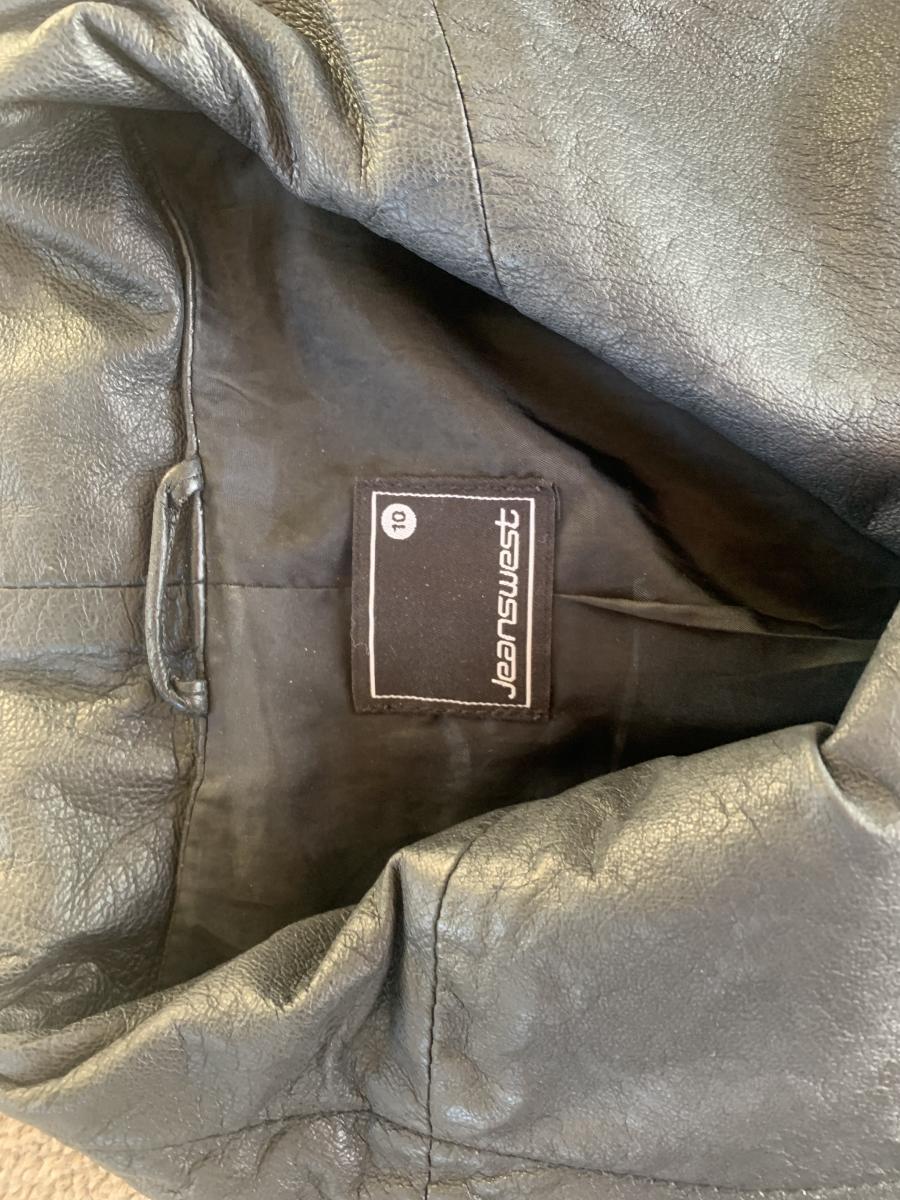 Black Jeans West ladies leather bomber jacket. Ex condition. Size 10.