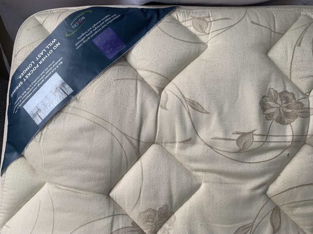 King mattress sell ,Tattersfield. Good clean condition no marks. 2 pillows. Been covered by a protector. Scaled down to a smaller bed.
