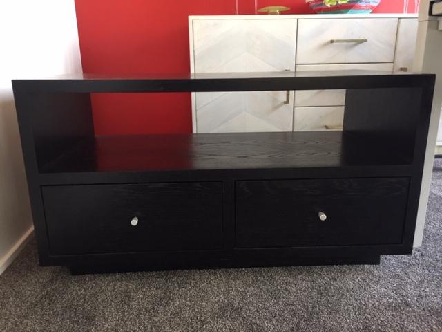 Dark stained wood, very heavy and solid construction, good order. Measures 1m wide, depth 50cms and height 54cms. Pick up from Sydenham, up one flight of stairs.