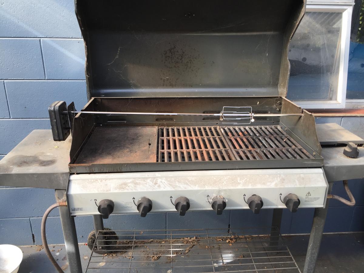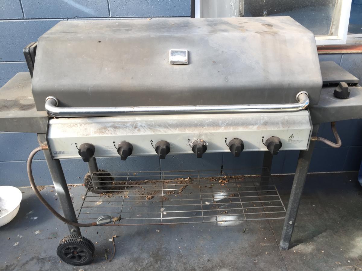 Bbq is 6burner hooded, no gas bottle and hasn’t been used in a while (>year)