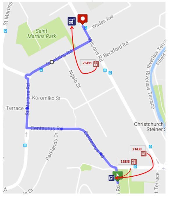 On Thursday 9th February between 6pm and 7am all buses travelling towards the city from Huntsbury will detour away from part of Centaurus Rd and Wilsons Rd while road works are carried out. Buses will detour off Ramahana Rd onto Centaurus Rd, St Martins Rd and Gamblins Rd back onto Wilsons Rd to … View moreOn Thursday 9th February between 6pm and 7am all buses travelling towards the city from Huntsbury will detour away from part of Centaurus Rd and Wilsons Rd while road works are carried out. Buses will detour off Ramahana Rd onto Centaurus Rd, St Martins Rd and Gamblins Rd back onto Wilsons Rd to continue the normal route. Bus stop 32832 on Centaurus Rd and stops 23430 and 23411 on Wilsons Rd will be closed during this time. Buses travelling towards Huntsbury are not affected. View detour map below.