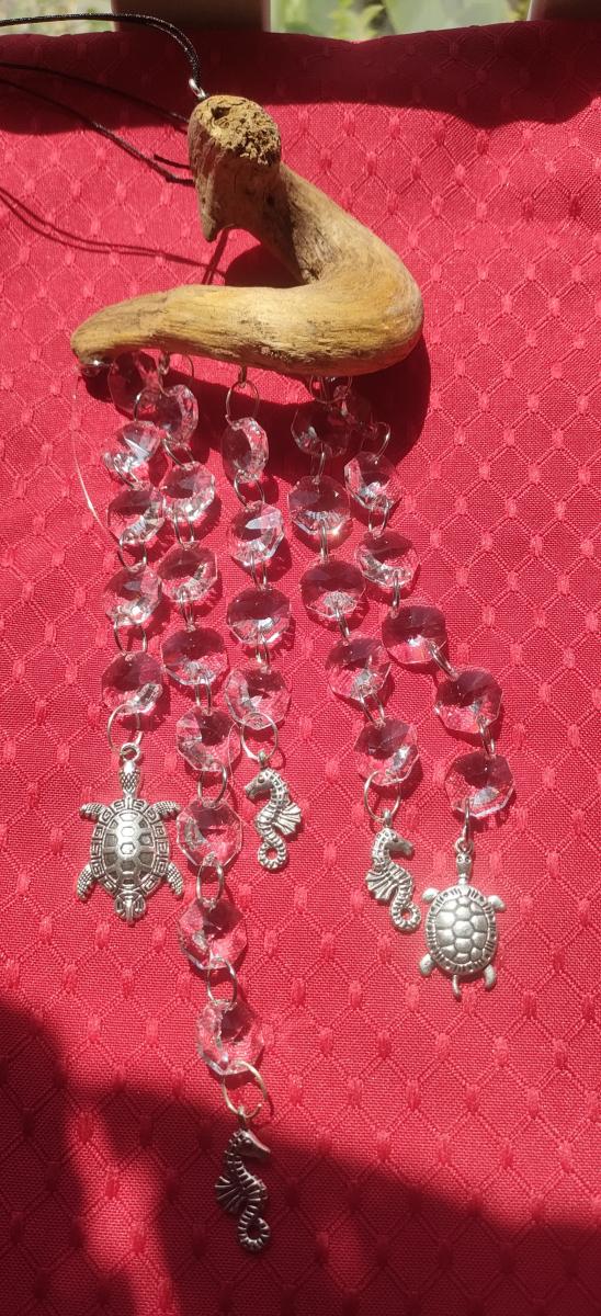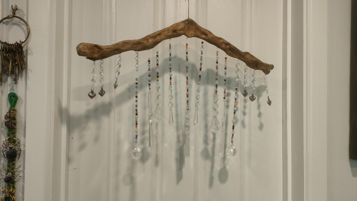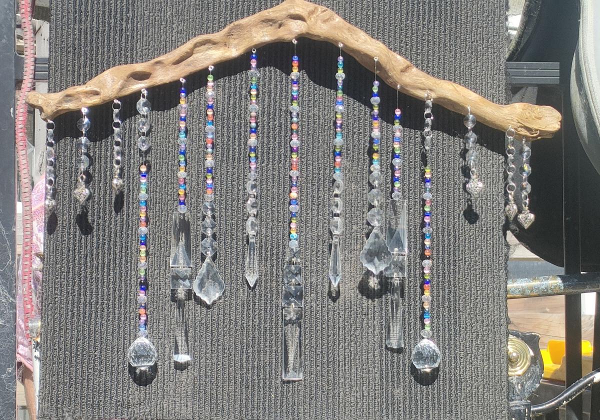 Making crystal and glass sun catchers, this one is amazing in the sun,a lot of colors come out of so many prism's.I will put more up struggling with getting good photos,can be viewed in kainga.this one is $65