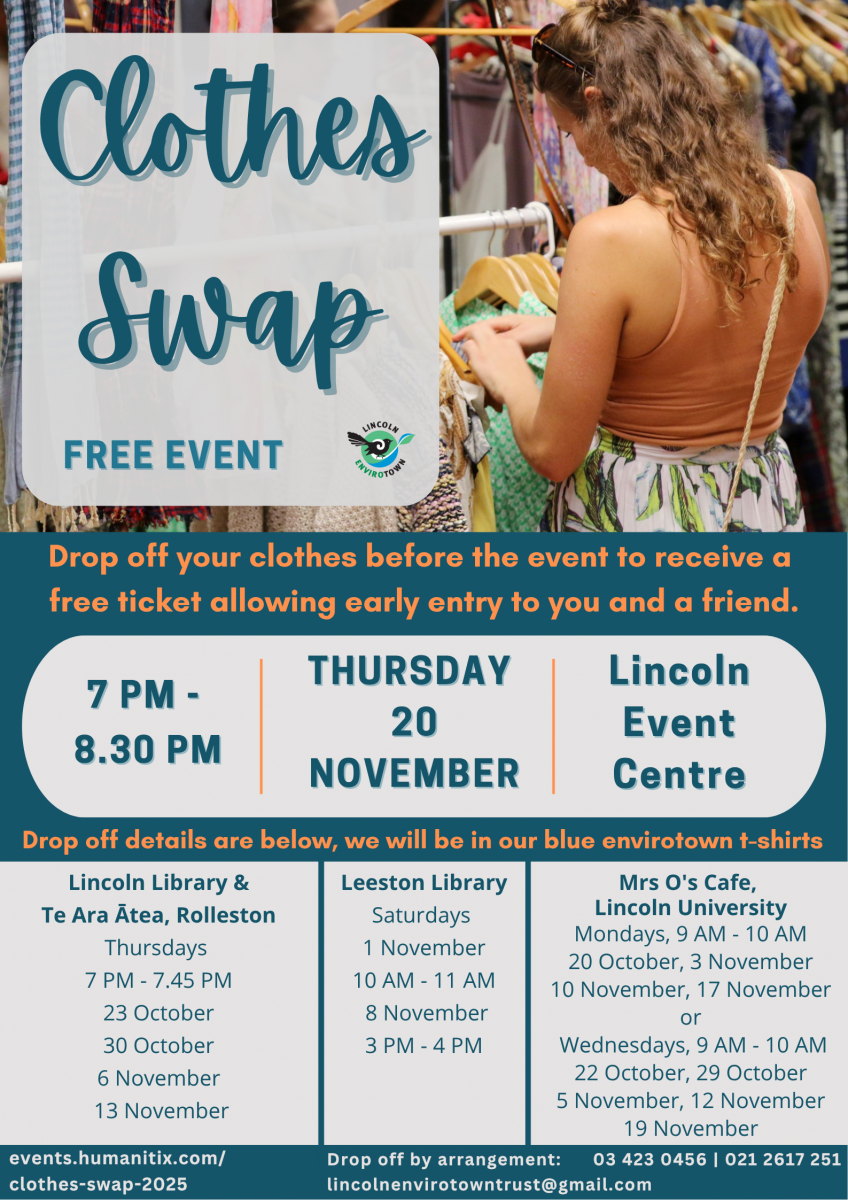 You can also get in touch through by email lincolnenvirotowntrust@gmail.com or phone 03 423 0456 | 021 2617 251 to arrange.