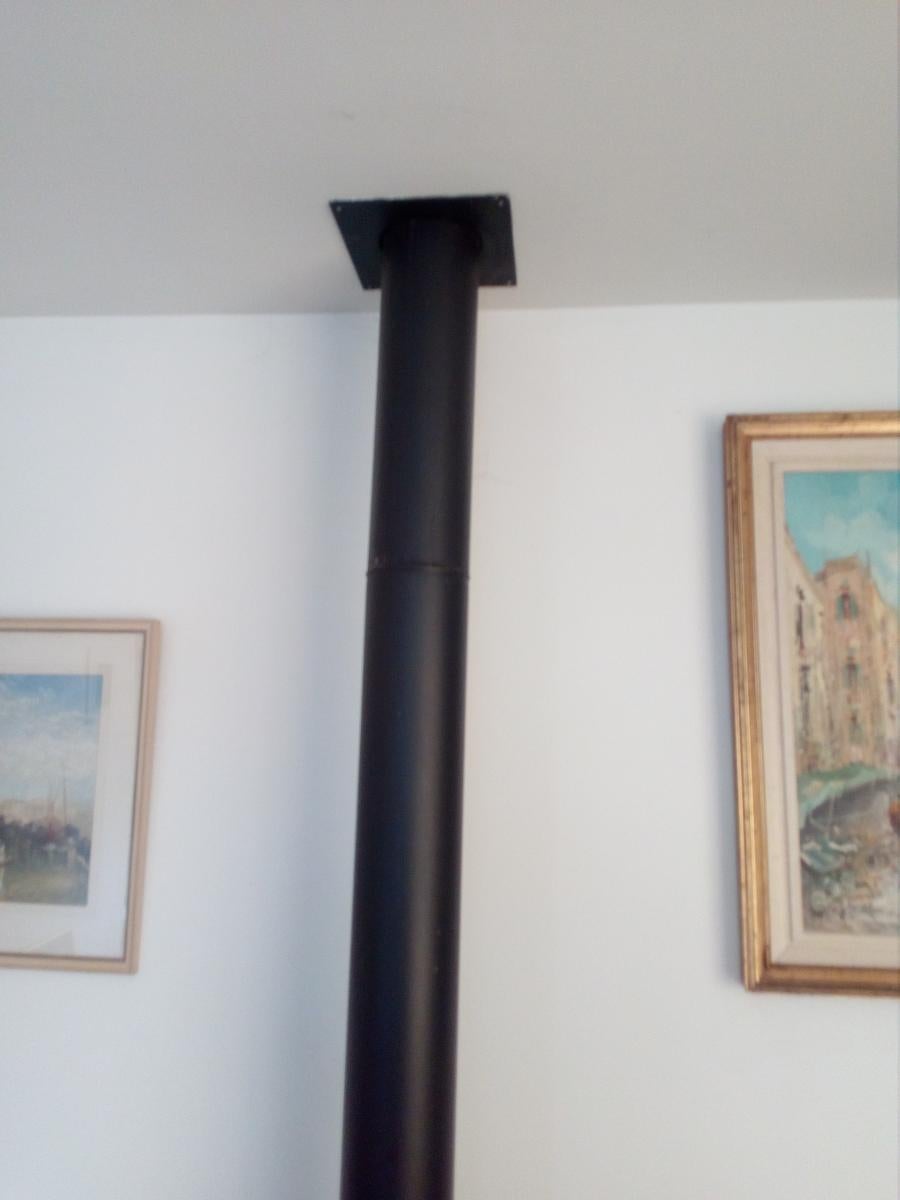 Gas log fire and flue in very good condition -used until recently when heat pump installed. Cannot be tested as gas bottles removed prior to h.p. installation. In situ at the moment.