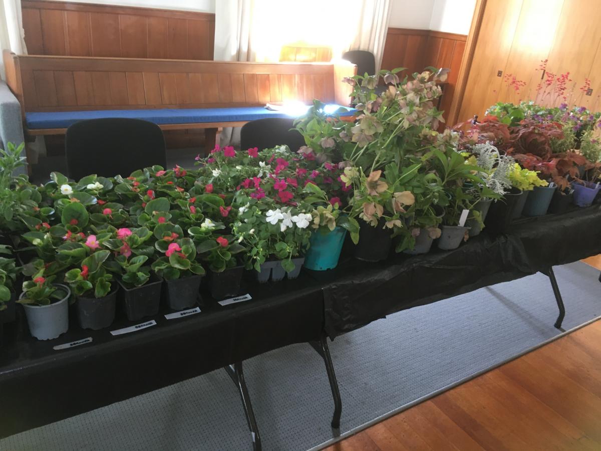 Plants for the flower garden, the vegetable garden, or for indoors, as well as garden related items, preserves, sausage sizzle and raffle.