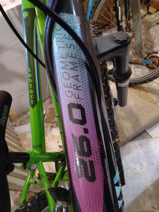Rather Large I cant reach floor when riding, is in excellent condition X-Fusion was an expensive Bike but Daughter never rode it. has just sat in Garage. I would recommend a service. As we are renovating we just dont have any storage room