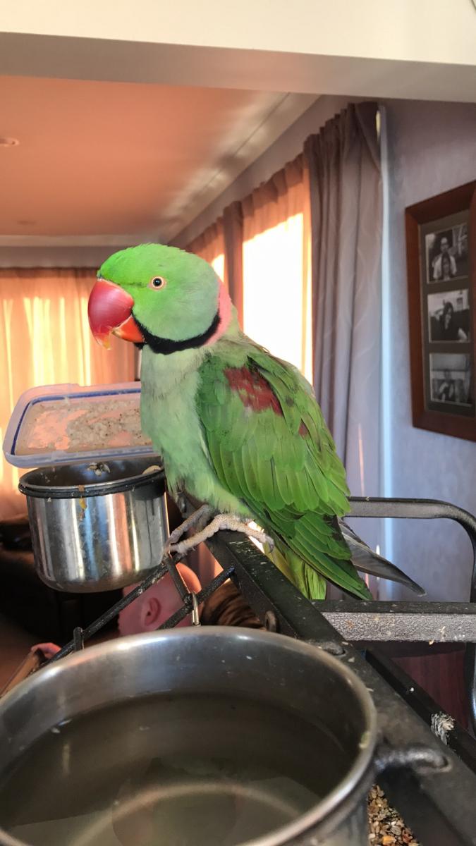 my alexandrine has been found and is well after some love and care from the great staff at animal and bird hospital now he is home Andrew a very tiring two cold night away