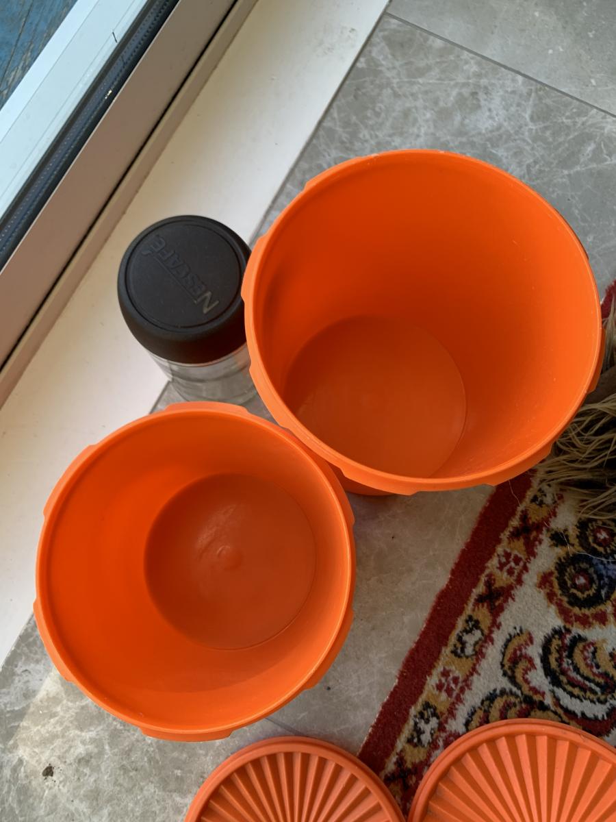 $ 5.00 for two containers in great condition , coffee jar to give you idea of height . Dix st . Hombre / wigram