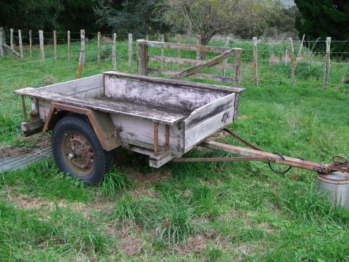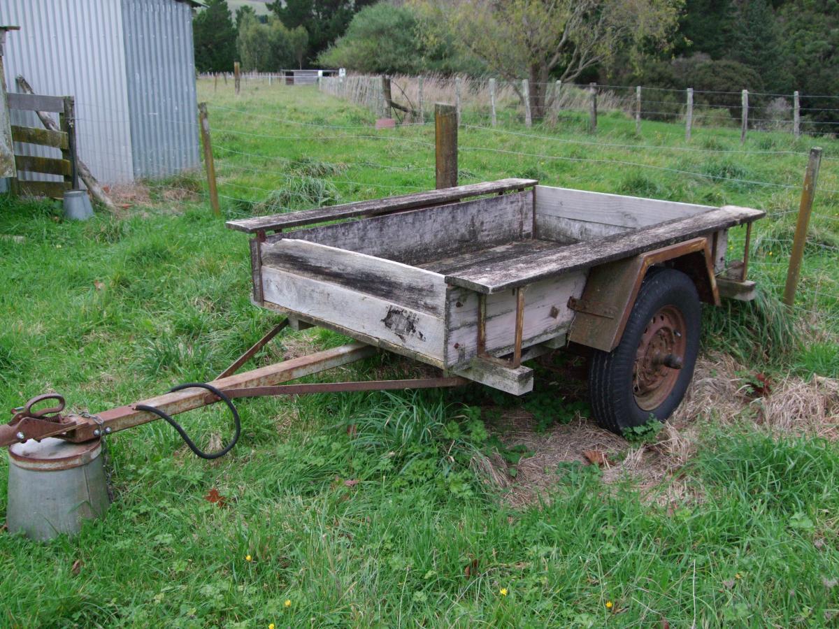 Our old trailer has been off the road for several years, used around the farm block for firewooding, etc. We're moving soon and have no need for a trailer, so the old girl is free to a good home. Trails well, needs the electrics sorted, but a really useful on-farm or lifestyle block trailer … View moreOur old trailer has been off the road for several years, used around the farm block for firewooding, etc. We're moving soon and have no need for a trailer, so the old girl is free to a good home. Trails well, needs the electrics sorted, but a really useful on-farm or lifestyle block trailer with plenty of life left. We'll be sorry to see the old girl go, but hope someone will give her another go!