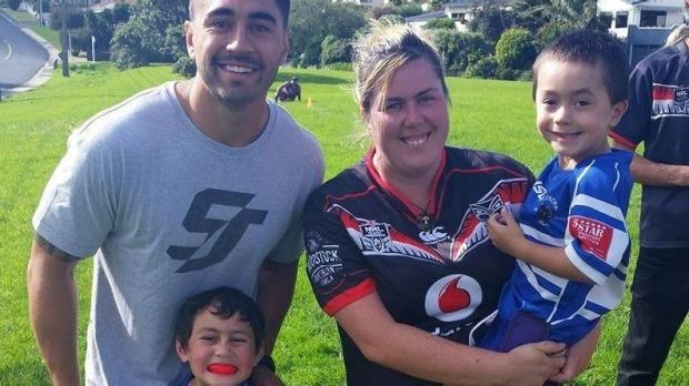 Shaun Johnson plays water boy at under-6 rugby league game in north Auckland