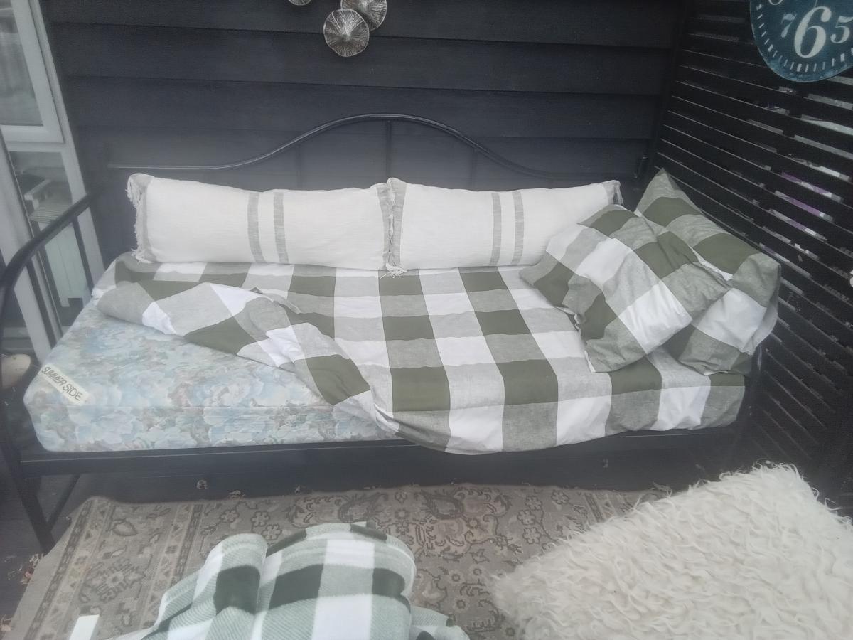 Matress in great condition has summer/winter sides Comes with cover, cushions and pillows
