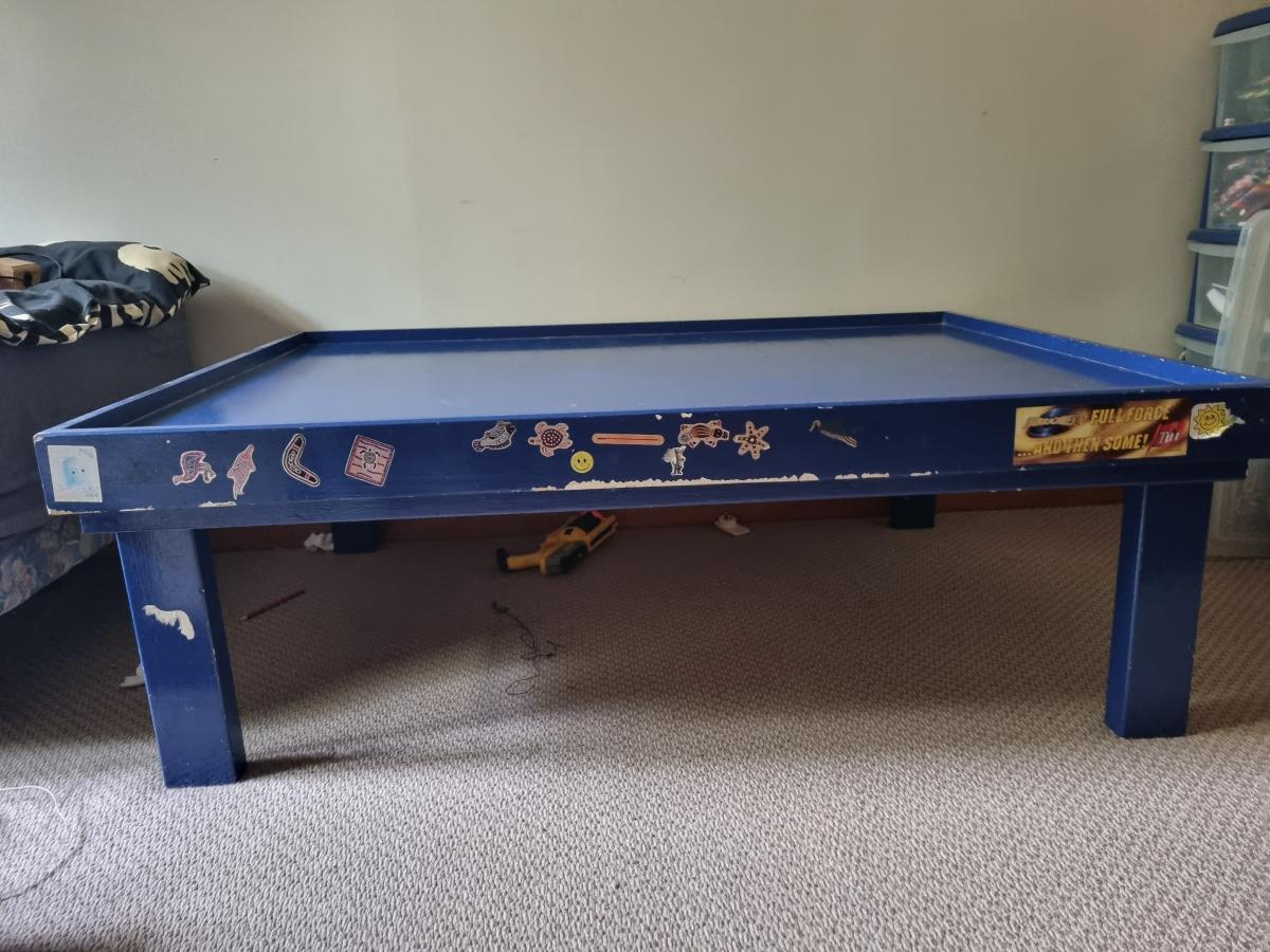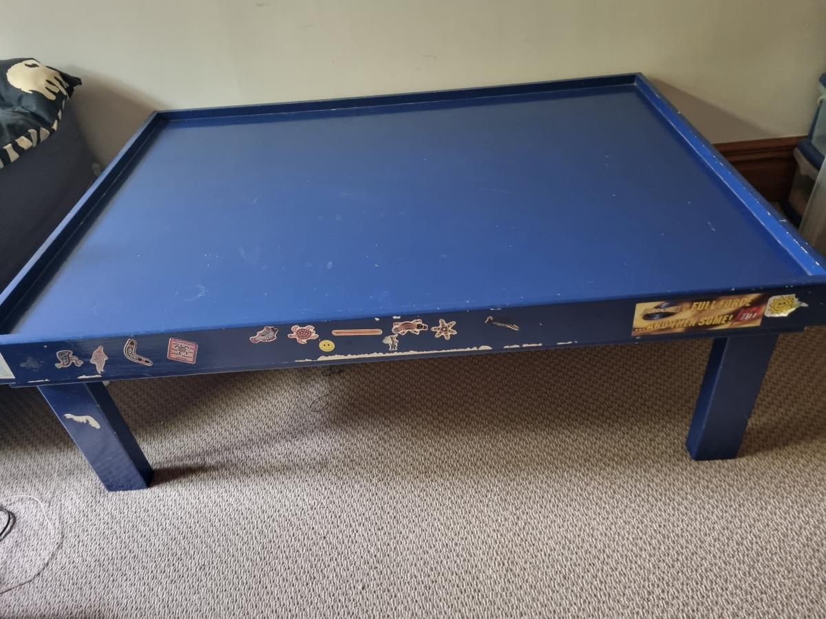 Great kids play table, perfect for LEGO, trains, craft or any creative fun. The table is solid and in good condition, a bit of wear and tear as expected and some stickers on the sides.