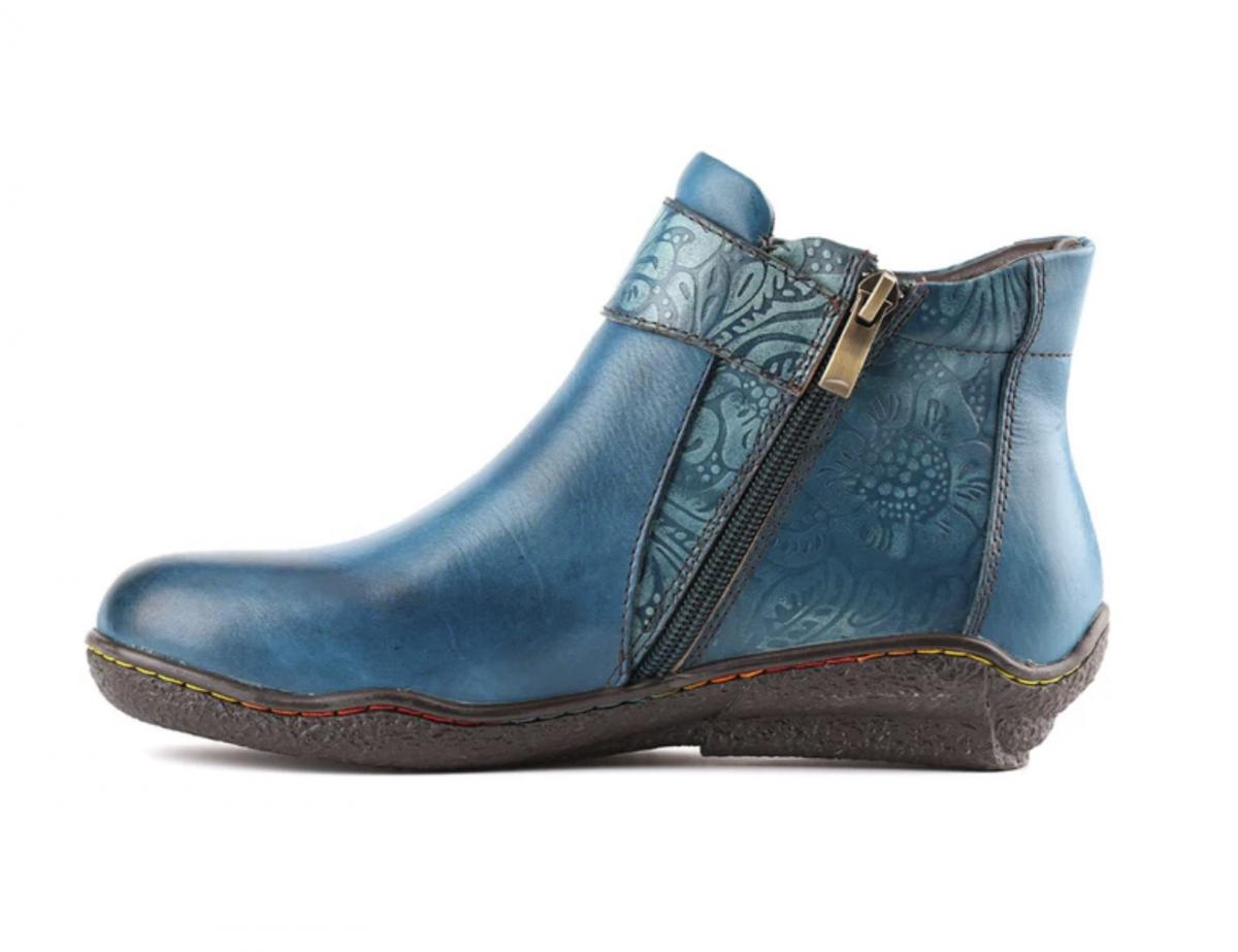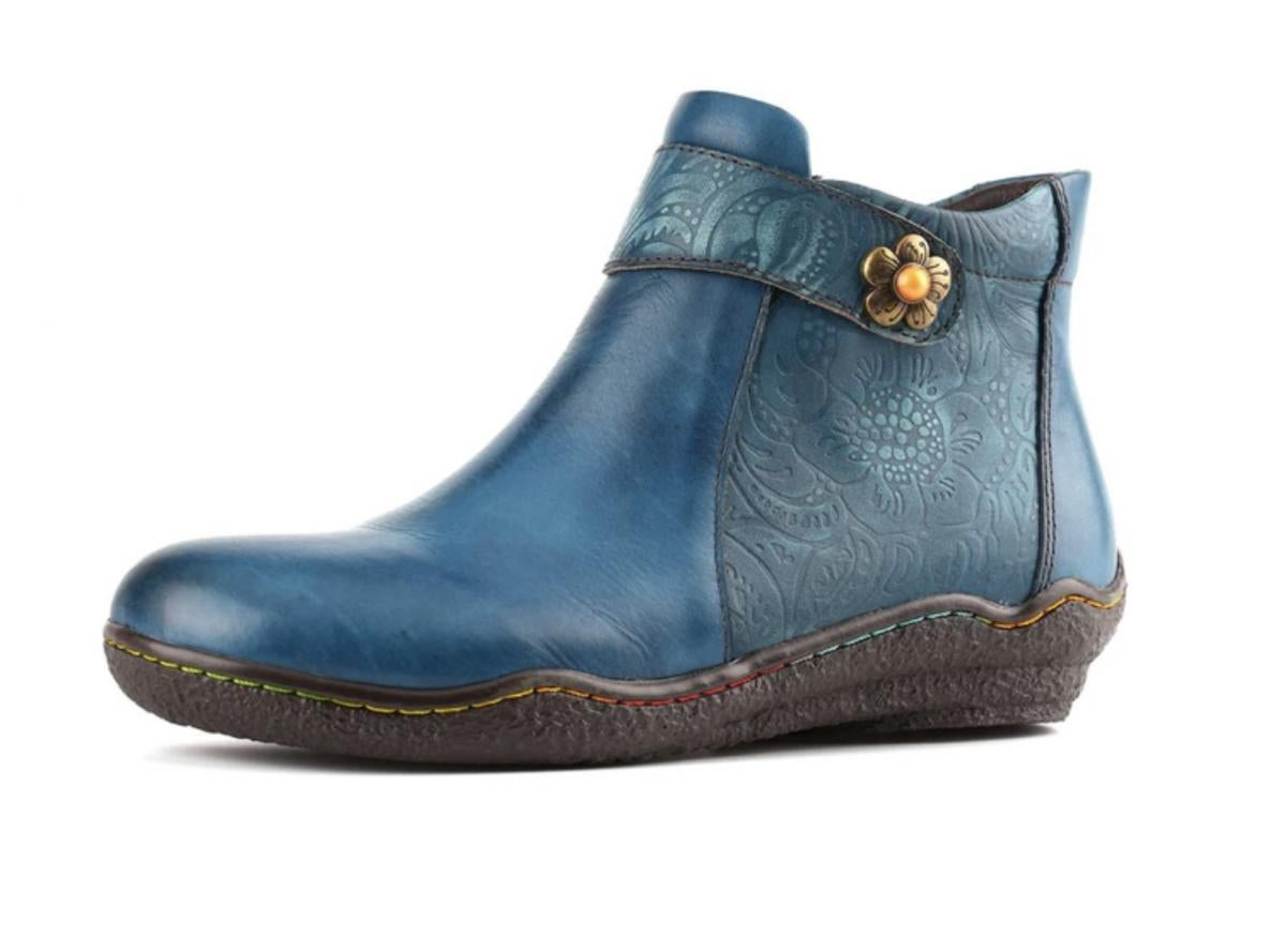 Retro Blue Boots, size 39. Comfortable large toe box. Zipper closure. Flat 1 inch rise. Brand new, never worn. Value $155.