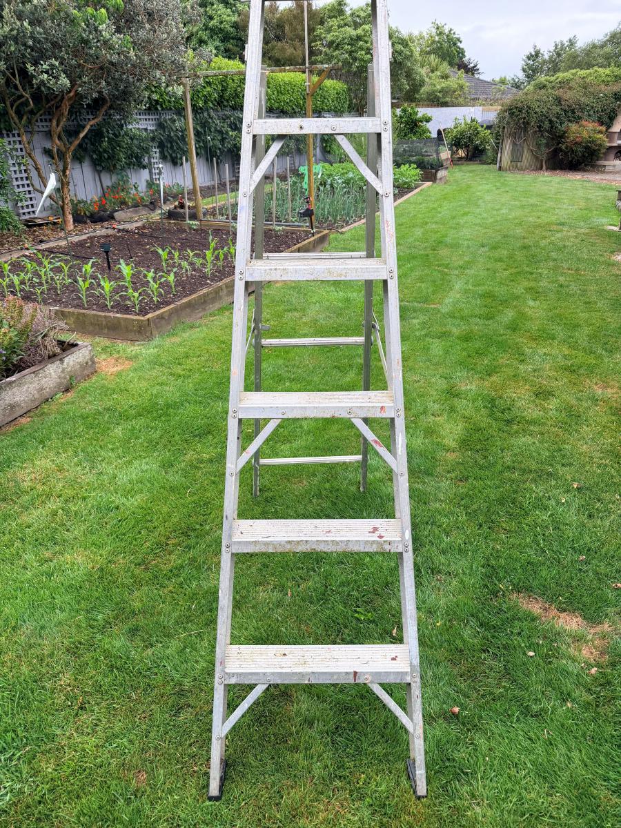Has served me well over the years but has been replaced by a new style of ladder. Opens out to 3.2 mtrs approx. Still in good working condition. Been stored outside so spiders etc come free.
