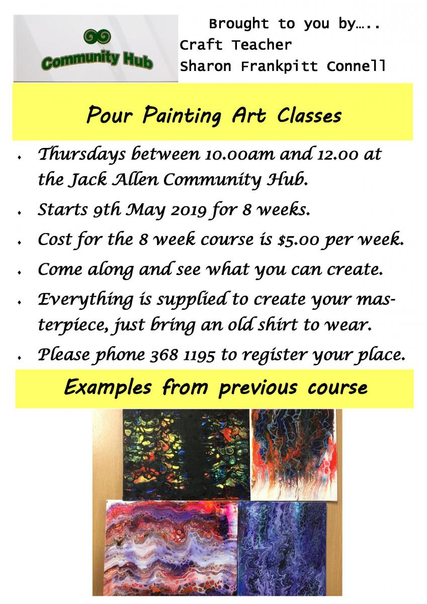 Come along and have some fun, starts tomorrow. Please note there was an error in the original publication. The cost for the course is $5.00 per week. Everything to complete your masterpiece is supplied, just bring an old shirt to protect your clothes.