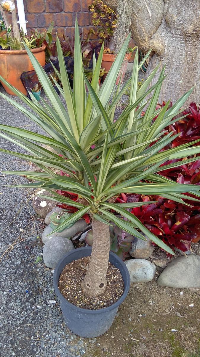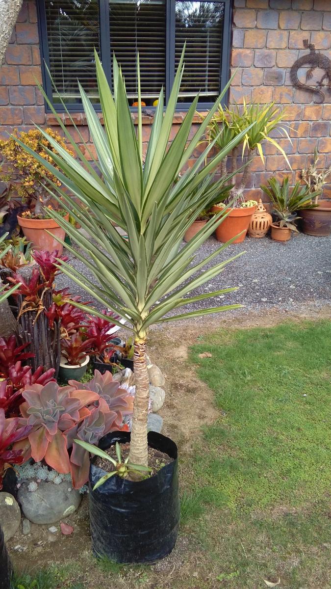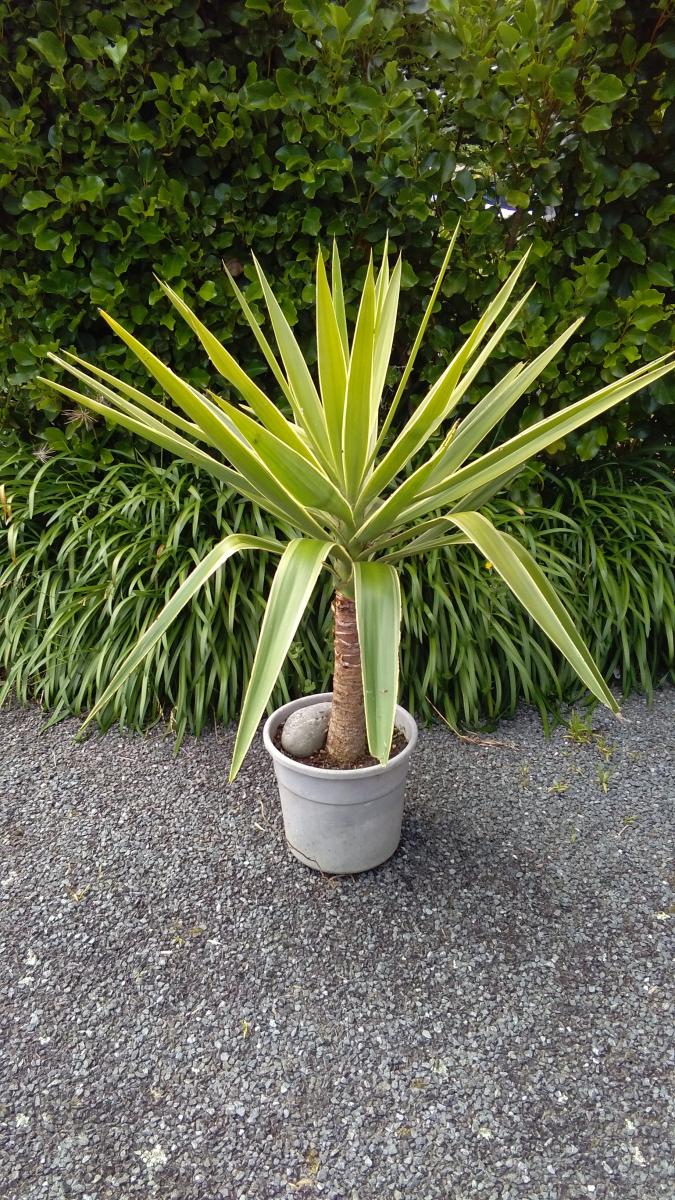 Variegated Yuccas cream and green make a nice accent plant in a pot or subtropical garden extremely hardy. Single stem approx: 1.2mt $55.