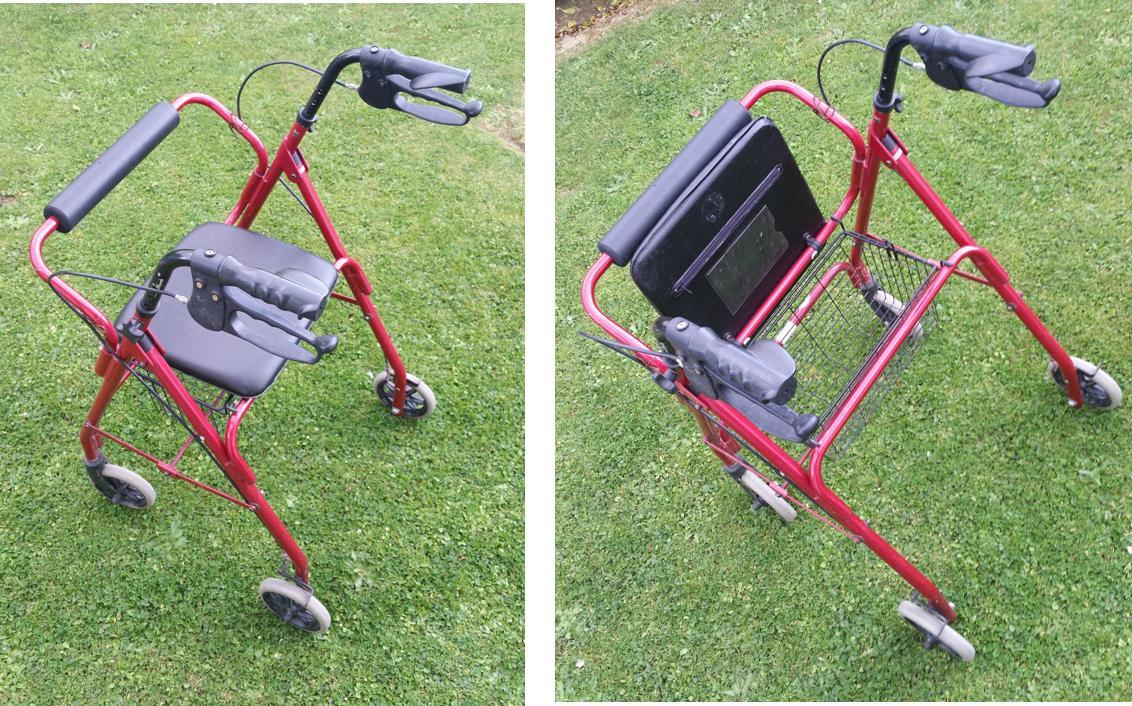Good condition, mainly indoors use, has a handy basket under seat which is clean and no rips.