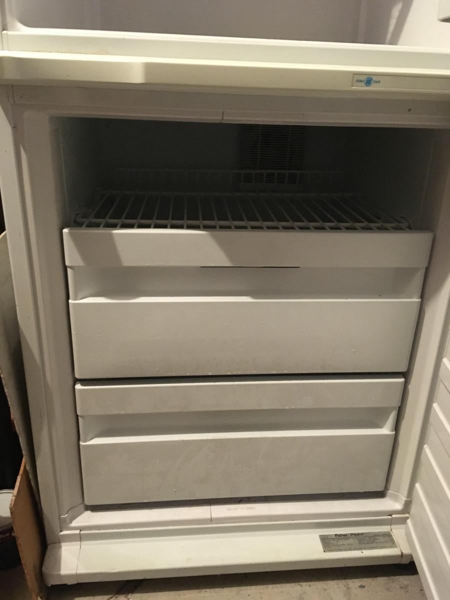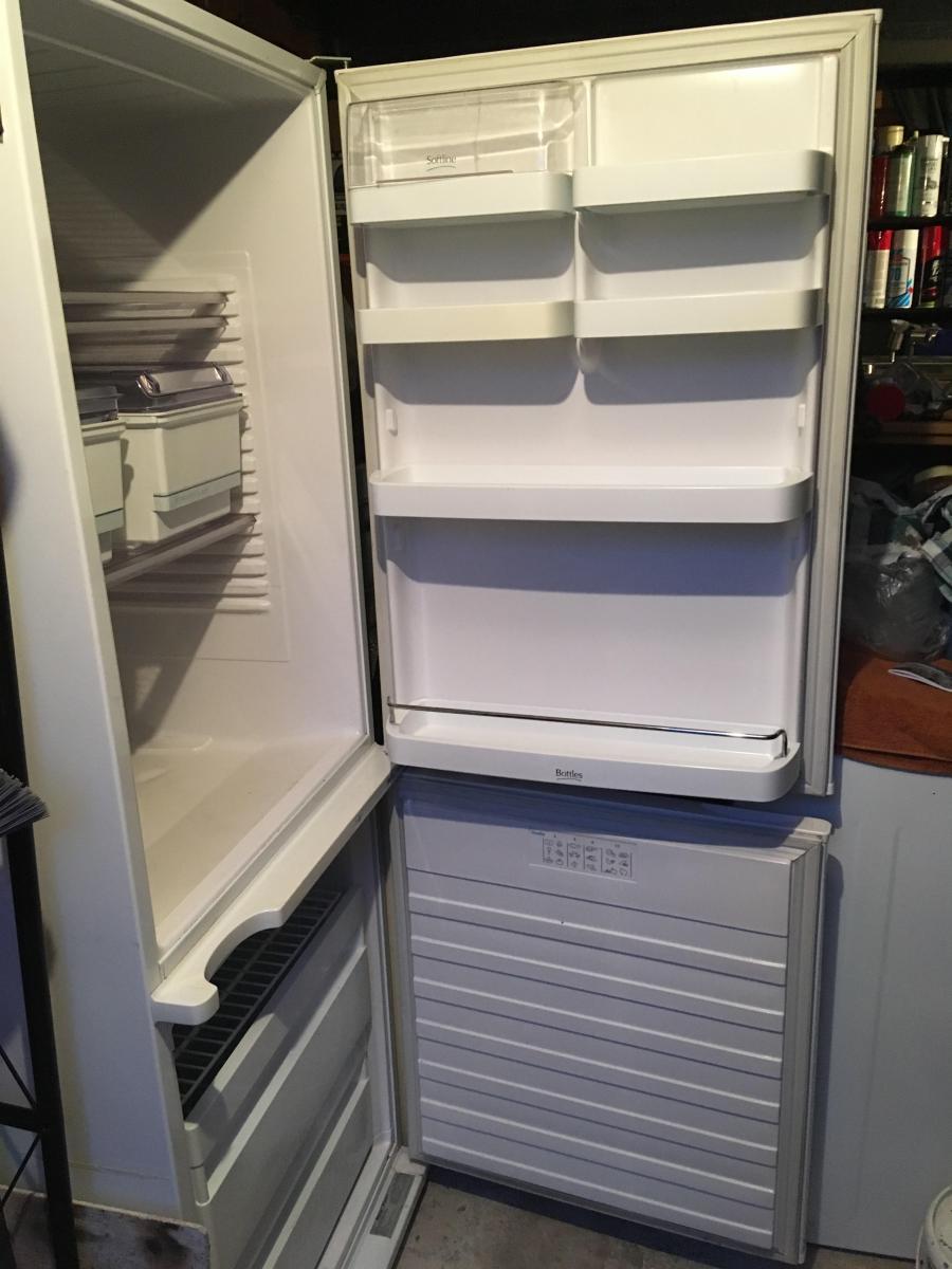 A white F&P 395 litre fridge/freezer in very good condition A new one is $1500 and up. This one runs perfectly and doesn't ice up.