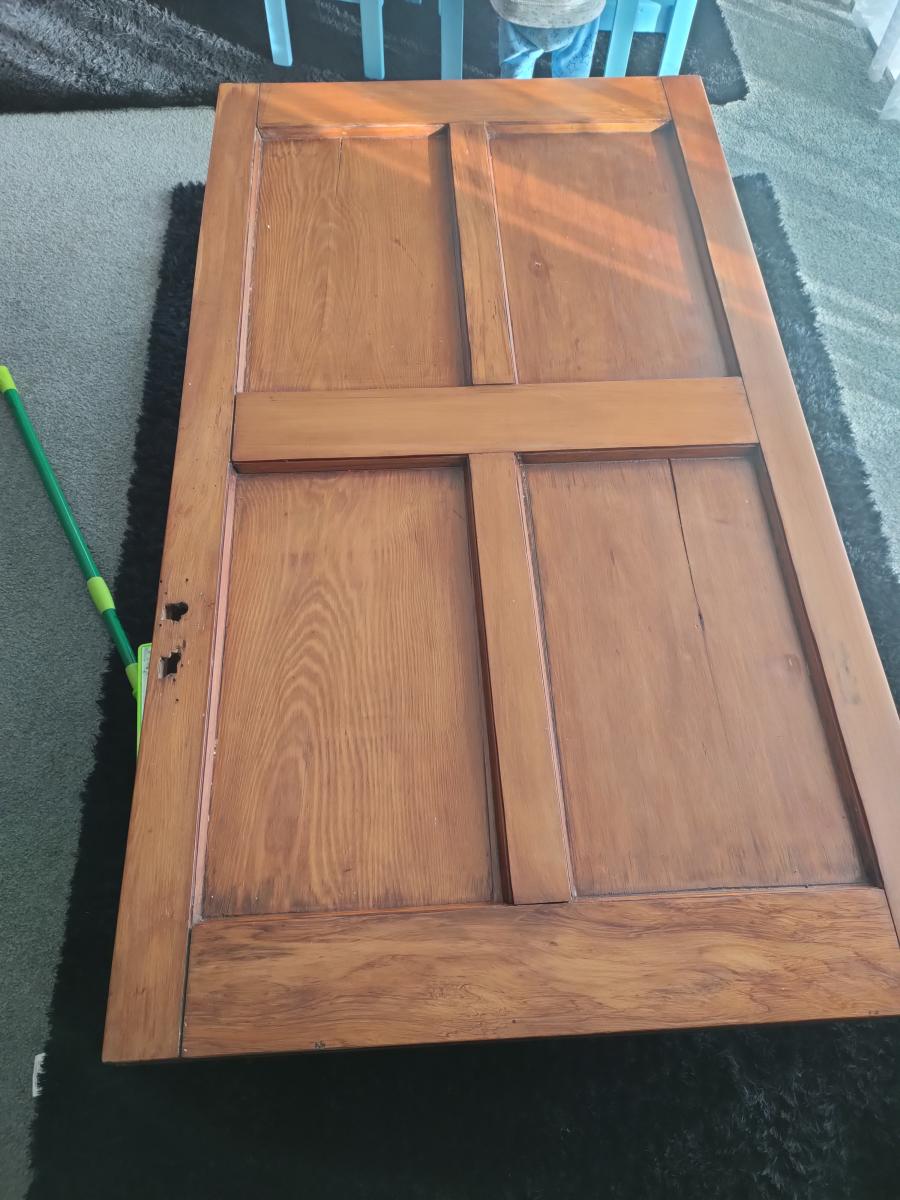 Solid coffee table. Door made into a table, open to offers. Needing gone asap! Pick up levin