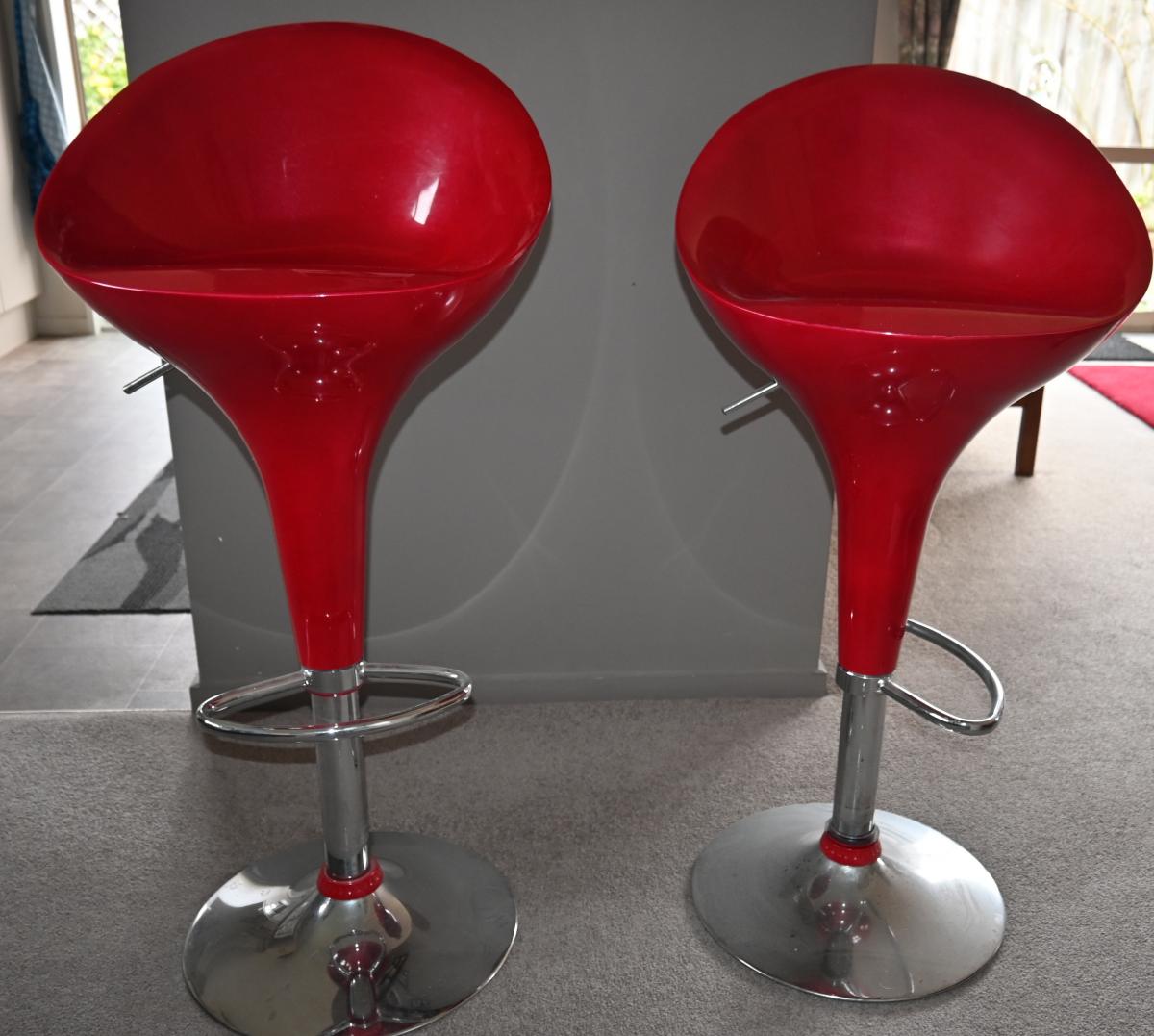 Pair bar stools for sale. May be collected from Rangiora. Excellent condition. Price is for the pair. 1m high. Adjustable.