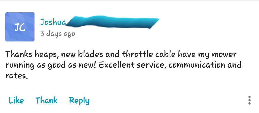 Honest, reliable servicing and repair of lawnmowers and garden power tools (plus other random stuff, just ask, even ornaments).