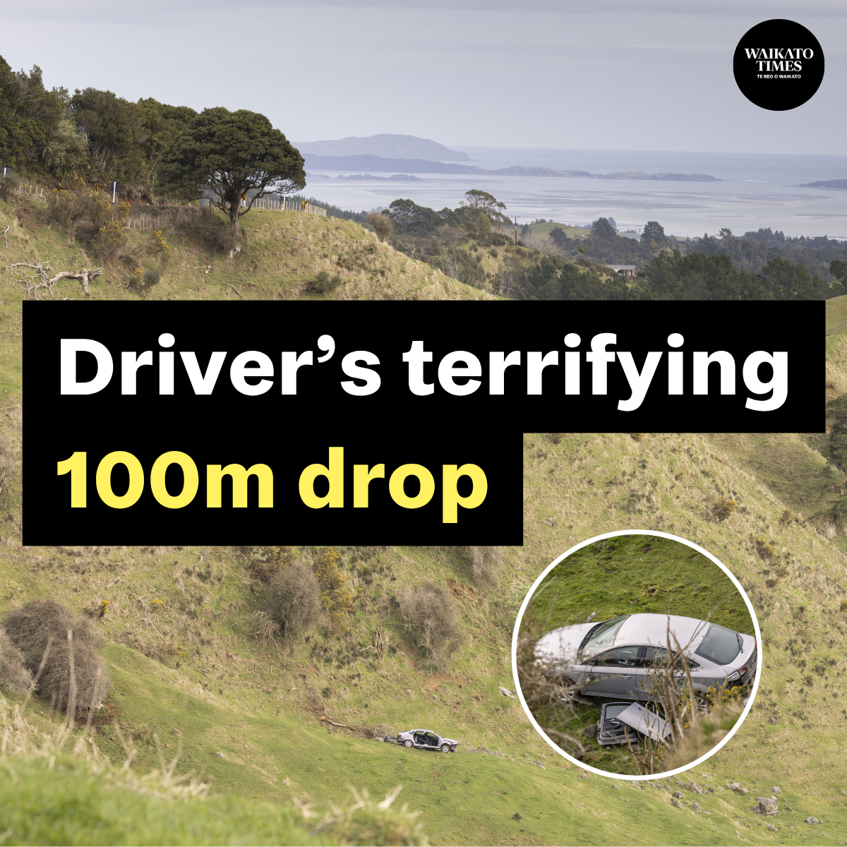 A car that ended up 100m down a steep gully left a winding west Waikato road and sailed right over a roadside fence without touching it.