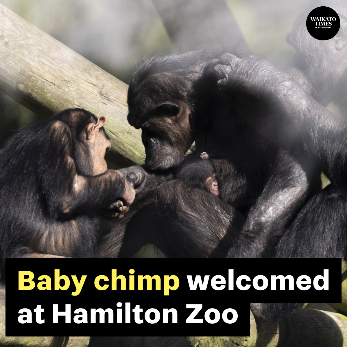 A new baby chimp born at Hamilton Zoo is being shown off to keepers and protected by male family members.