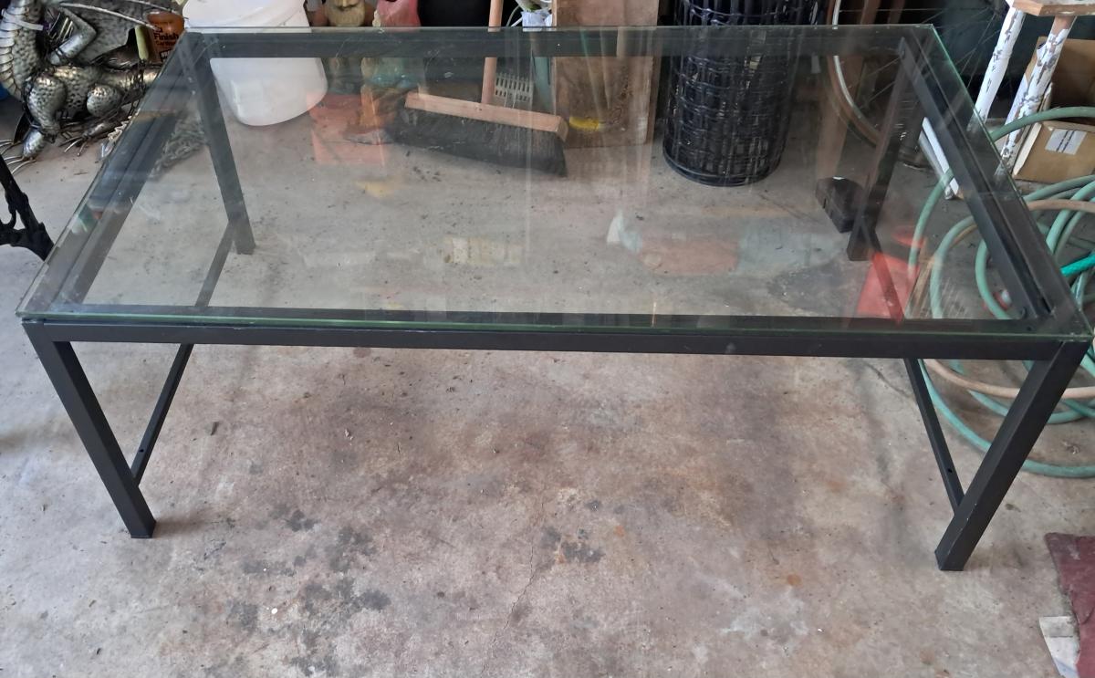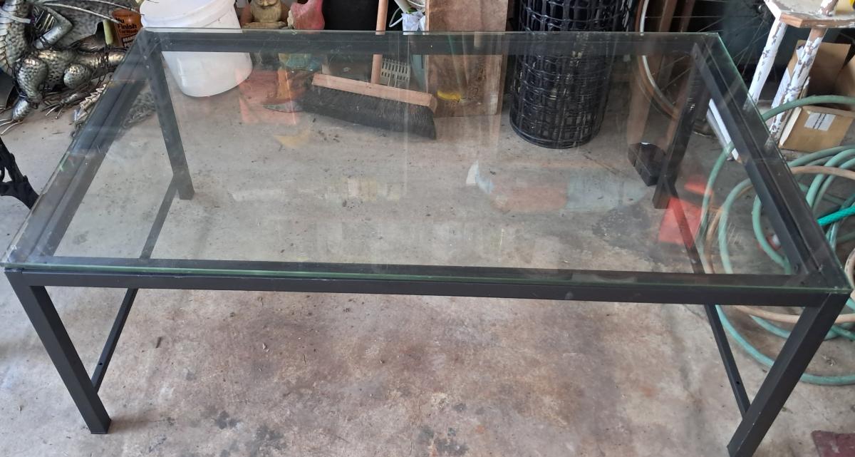 Found on the side of the street. Free to a good home one very solid glass top table with metal painted frame. Must pick up.