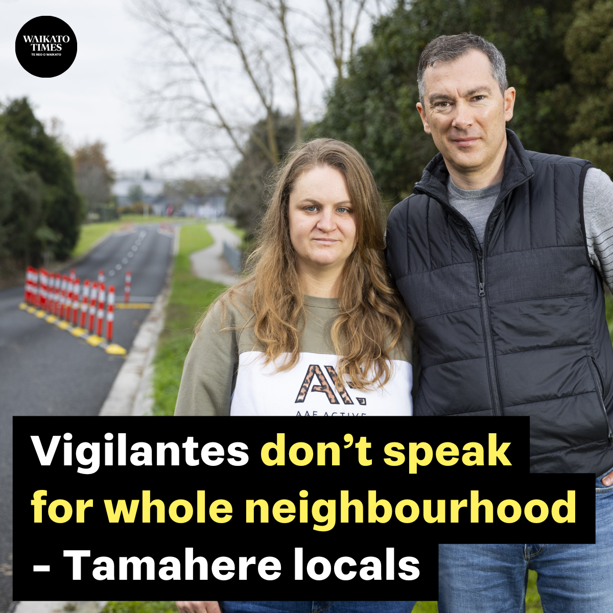 Matthew Scarborough and Lauren McLean, who live on Birchwood Lane with their three children, … View moreA battle over 28 seconds has erupted into vandalism, outrage, and division on a quiet Tamahere street, after “vigilantes” ripped out traffic-calming measures installed by the district council.