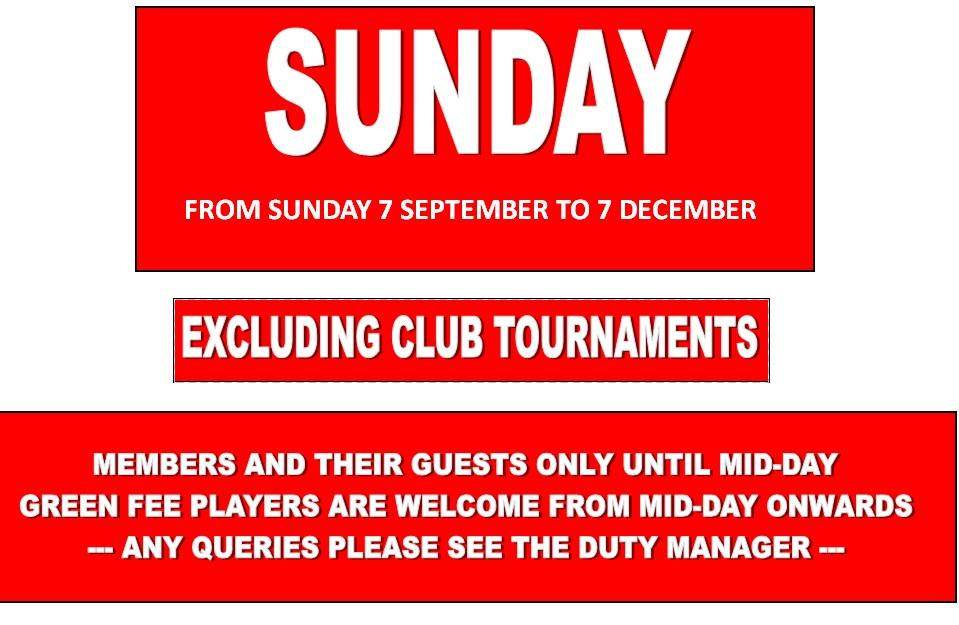As from Sunday 7th September to 7th December 2025 the course will be closed on Sunday mornings to Members Only and their guests only until Midday.