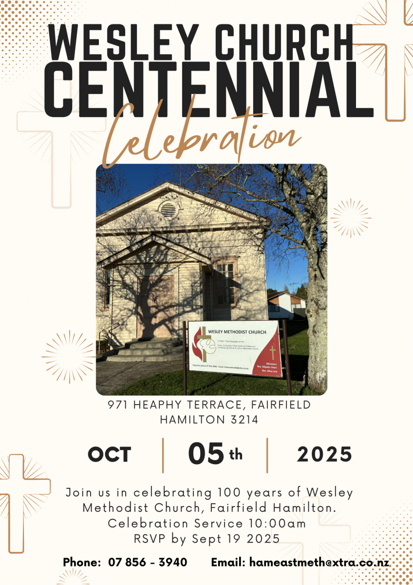 We look forward to celebrating with you on the 5 … View more100 years strong! Services are still being held in the Church by the Fijian Congregation of the Hamilton East Methodist Parish and the Wesley Project Committee, is planning a rebuild to accommodate the growing Fijian community and congregation.