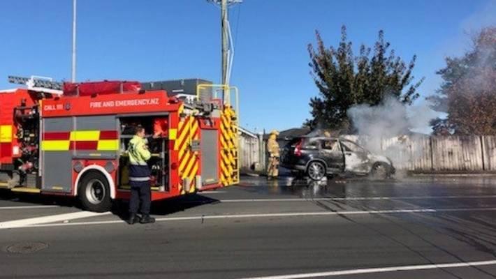 The black Honda CRV was ablaze around 10.30am, at the corner of Masters Avenue and Cambridge Road.