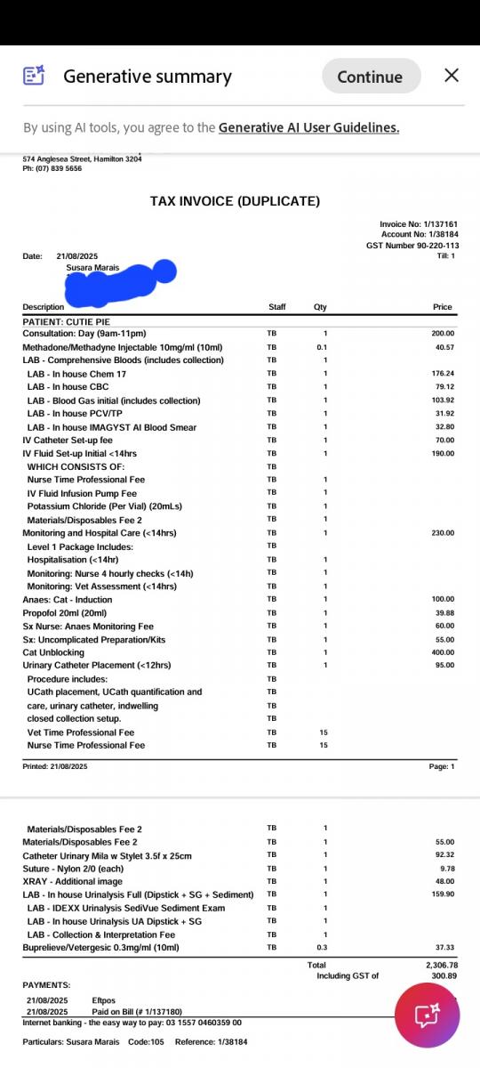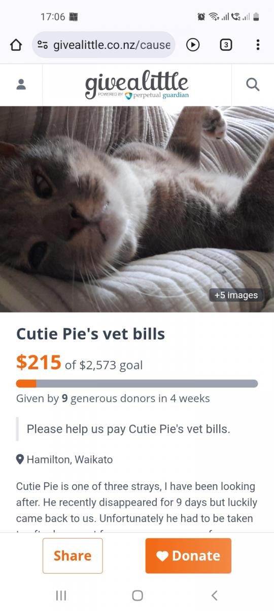 Cutie pie is/was a stray cat. This is debt for emergency care bills.