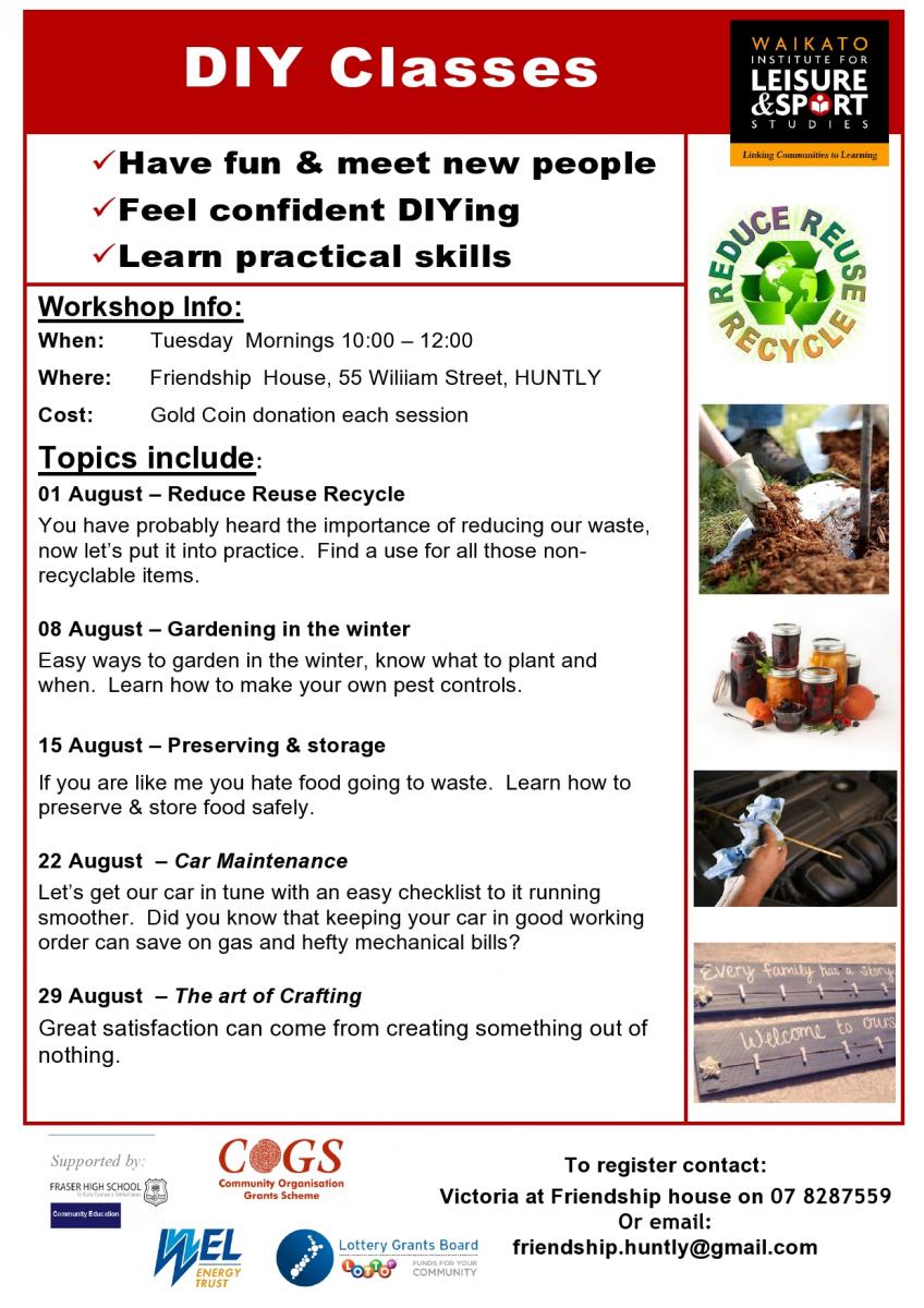 Where: Friendship House, 55 Wiliiam Street, HUNTLY