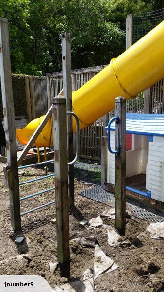 Note: The plastic play house has gone as it was broken and the large tunnel slide is not included.