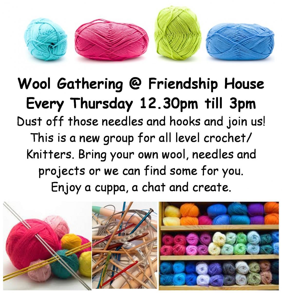 Wool gathering start back tomorrow at 12.30pm Come along and work on your own project, our ANZAC community project, get some ideas or learn join us to learn how to knit or crochet.