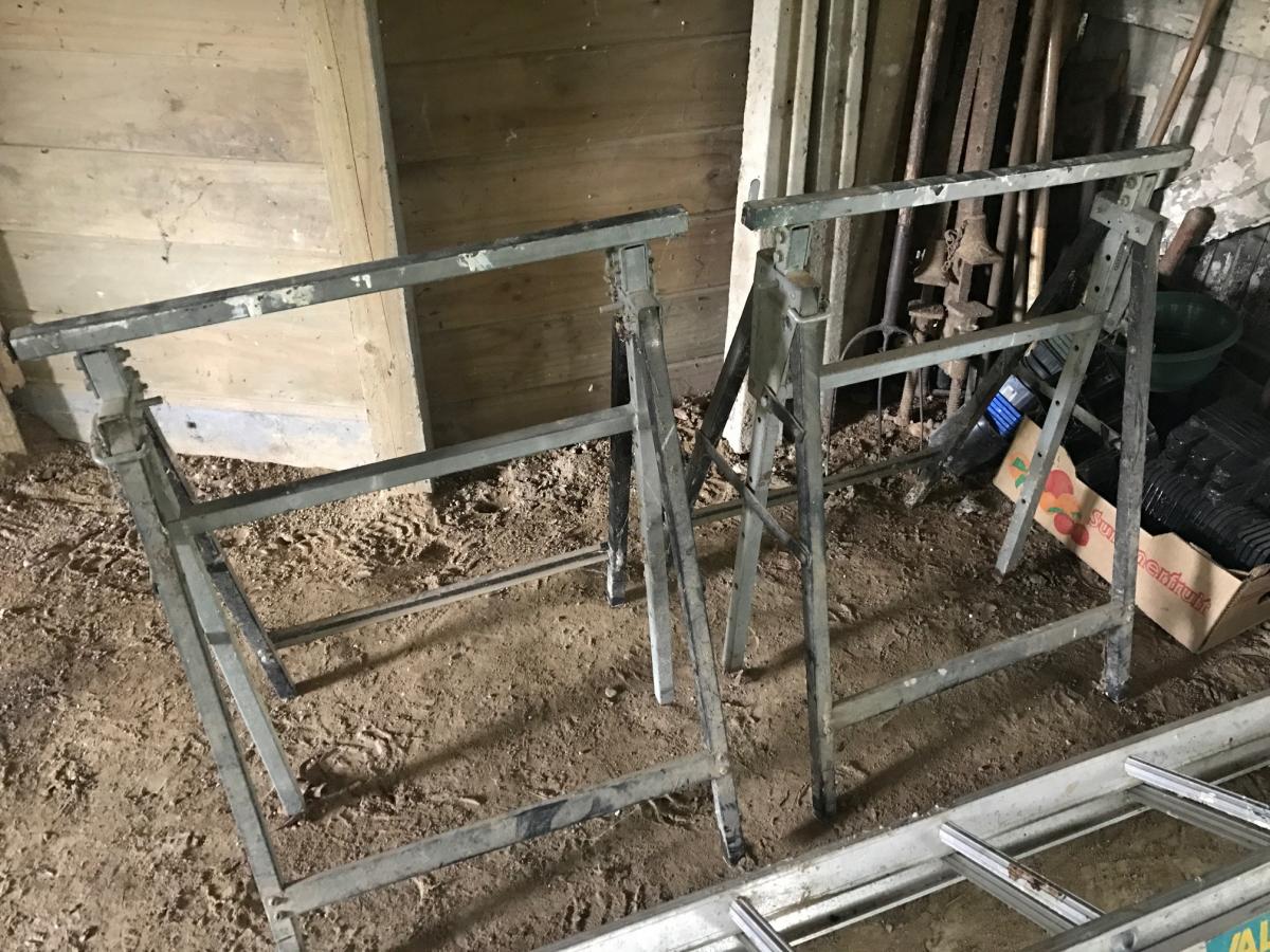 Pair of trestles. A bit dusty but still in working order. Collection from Casey Ave, Hamilton Central.