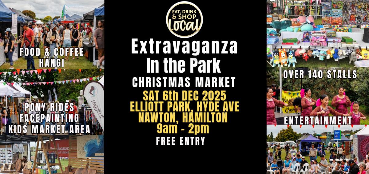 Whos coming for a great day out at the Annual Extravaganza in the Park Christmas Market returning in its 11th year. Stallholders not only from Hamilton & the Waikato Region but from as afar across the North Island attending.