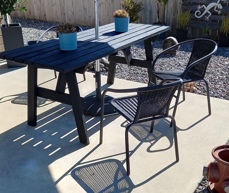 Wooden table with black legs great for transplanting plants on and/ or great side table next to the BBQ for all … View more2 Patio tables for sale.