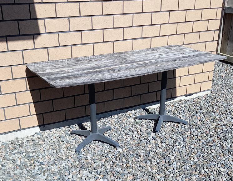 Wooden table with black legs great for transplanting plants on and/ or great side table next to the BBQ for all your cooking platters: $25.00