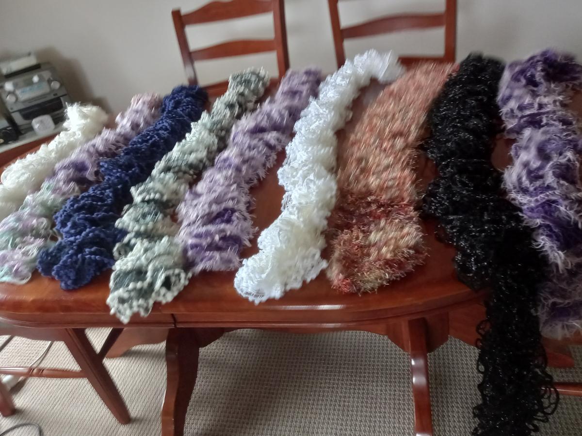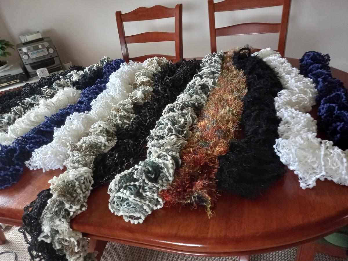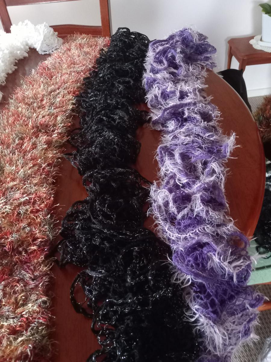 These scarves have been lovingly made to raise funds for Mission Beyond Borders. All proceeds will go towards buying wool and shipping of the items to Moldova, Romania and the Ukraine. There is great need because of the war in these areas and people are desperate. These scarves can be viewed at my … View moreThese scarves have been lovingly made to raise funds for Mission Beyond Borders. All proceeds will go towards buying wool and shipping of the items to Moldova, Romania and the Ukraine. There is great need because of the war in these areas and people are desperate. These scarves can be viewed at my home by ringing 021-057-0371 to make an arrangement to see them. They are all $10 each.