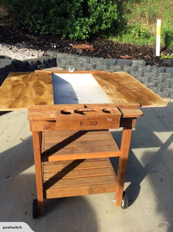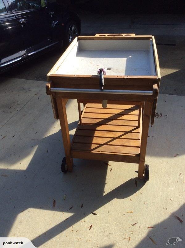 Reluctantly we have a fantastic solid wooden filleting table for sale. It has a large fibreglass sink with drain, is on wheels for easy moving and the side tables store away when finished or stored. Pick-up only. Cash or e-bank.