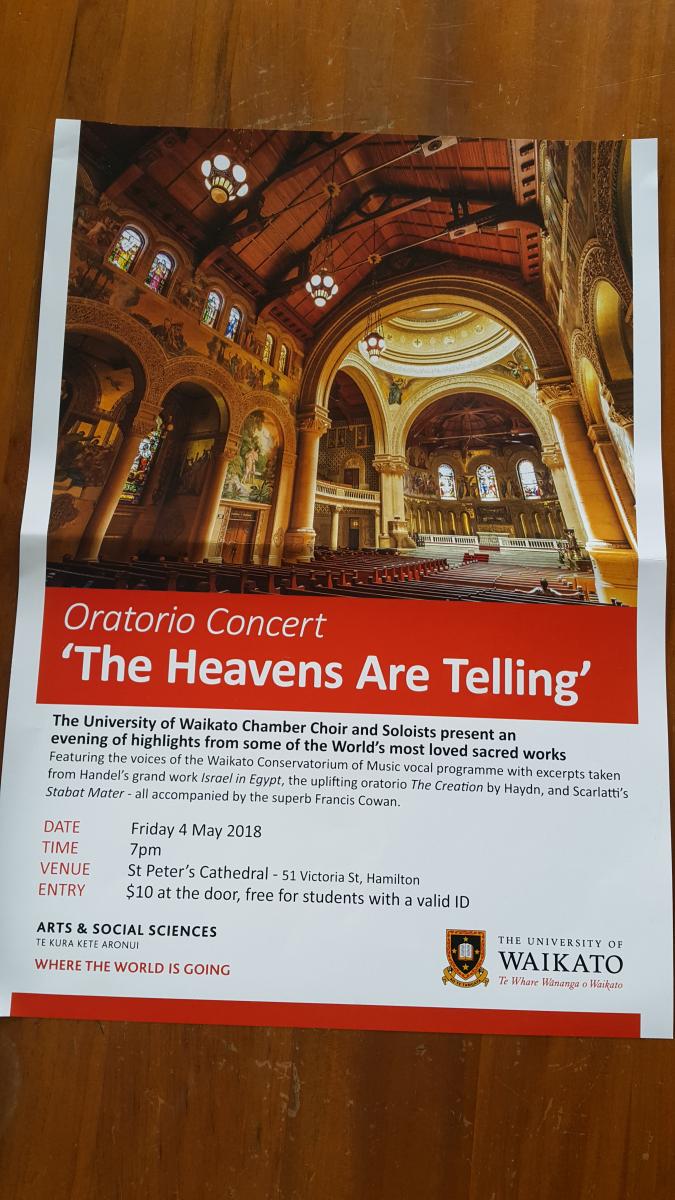 NOTE: contrary to the brochure the start time will be 7.30pm. (as advertised … View moreCome out for a night to remember, hearing the Oratorio's performed by the talented artists from the University of Waikato.