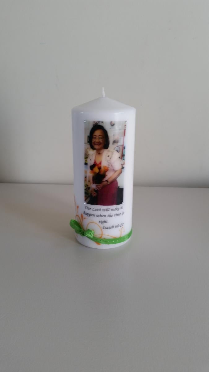 Pls send me a msg for a special Mother's day … View moreHi all. Mothers are special. Let them be reminded of this. Your personal messages, poems, prayers or well wishes on a candle as a gift this Mother's day. You can include their own photo or favourite flower /s or any photo they would like.