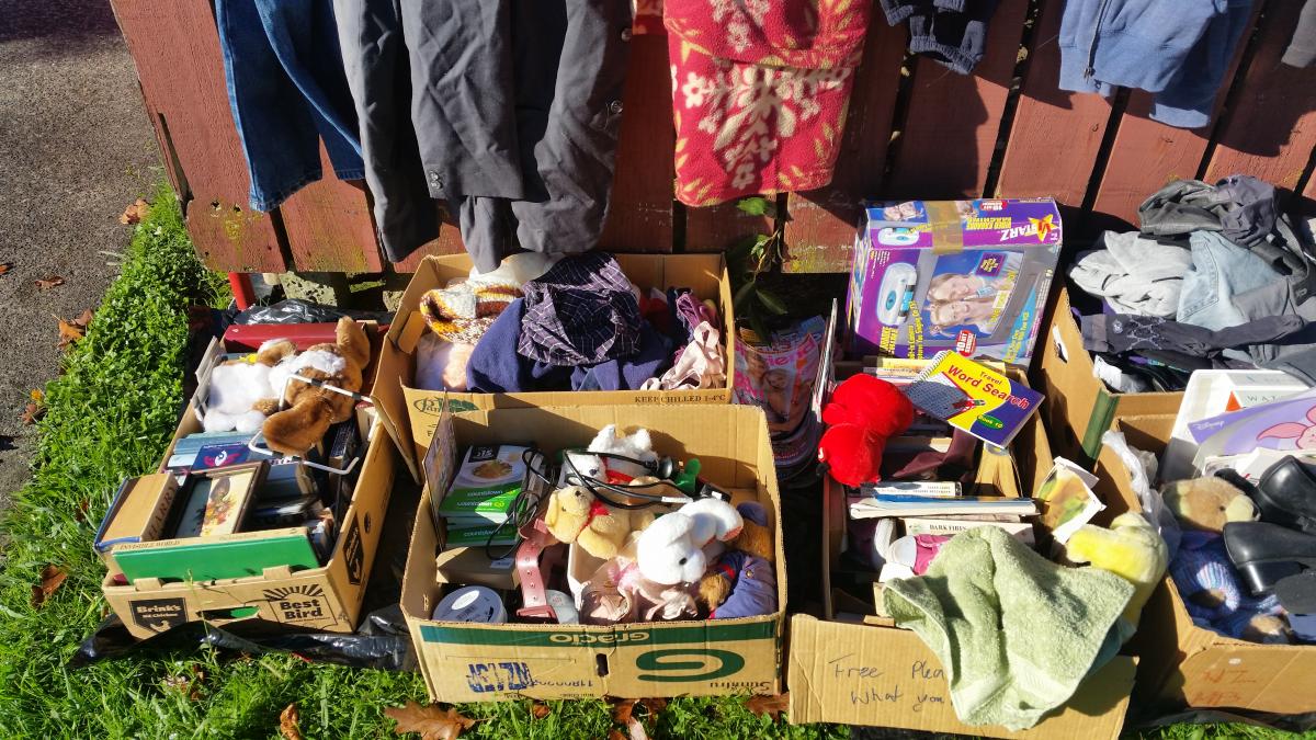 Lots of item from books to toys to clothes to kitchen things and more