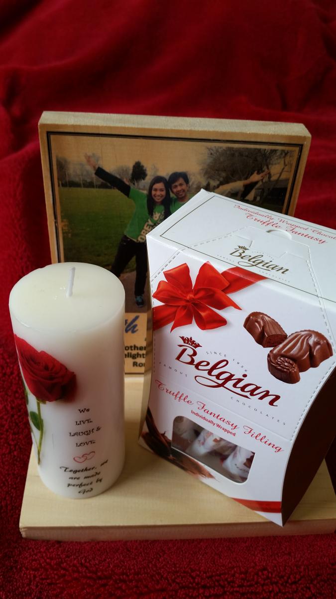 - candle (4.5in) with rose print or print of your own photo plus personal message