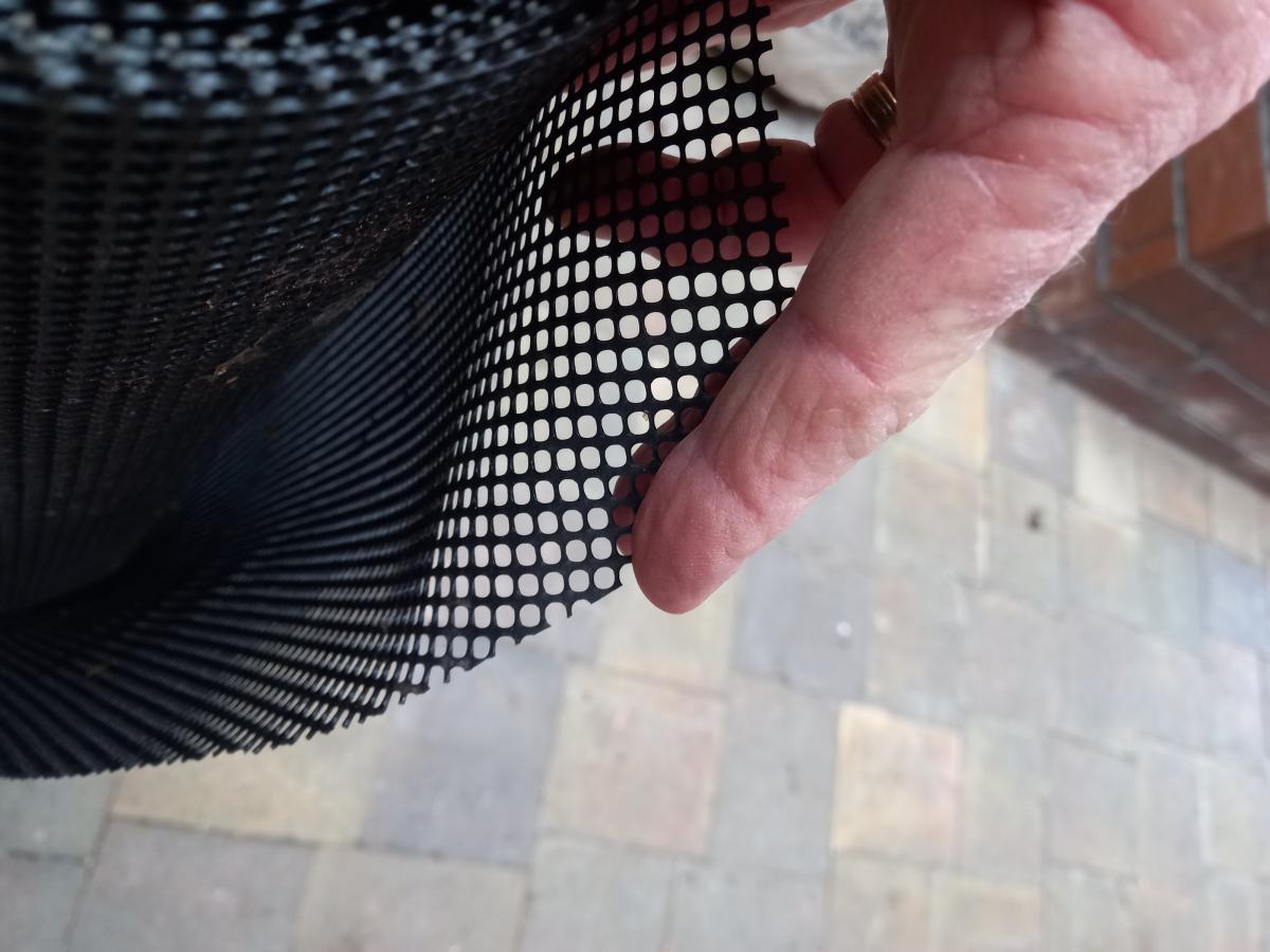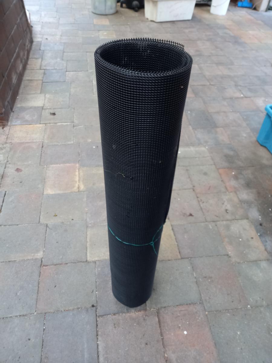 Moulded mesh with about 5mm holes. Could be used for sieving soil, or other garden projects. 92 cm wide. 2.7 metres long.
