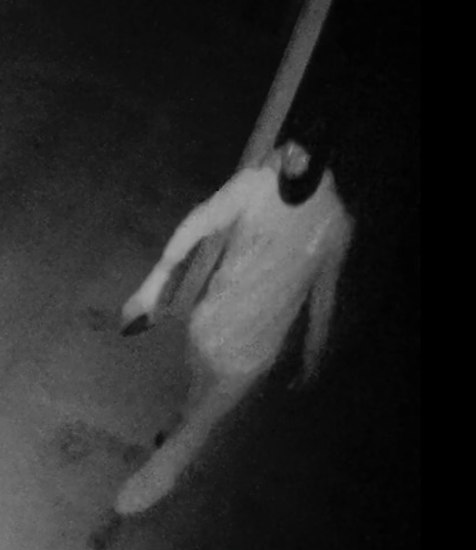 Unlike what the images appear to show, he is actually believed to be wearing a dark grey/black top and grey pants.