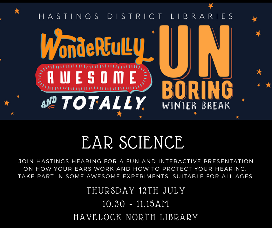 Here's your chance to see our Hearing Educator Carolynne in action! Get an idea of what we offer with our various free community education programs. Join us tomorrow at the Havelock North Library for a fun and interactive presentation that will be delivered to suit all ages in attendance - … View moreHere's your chance to see our Hearing Educator Carolynne in action! Get an idea of what we offer with our various free community education programs. Join us tomorrow at the Havelock North Library for a fun and interactive presentation that will be delivered to suit all ages in attendance - bring your children and grandchildren.
