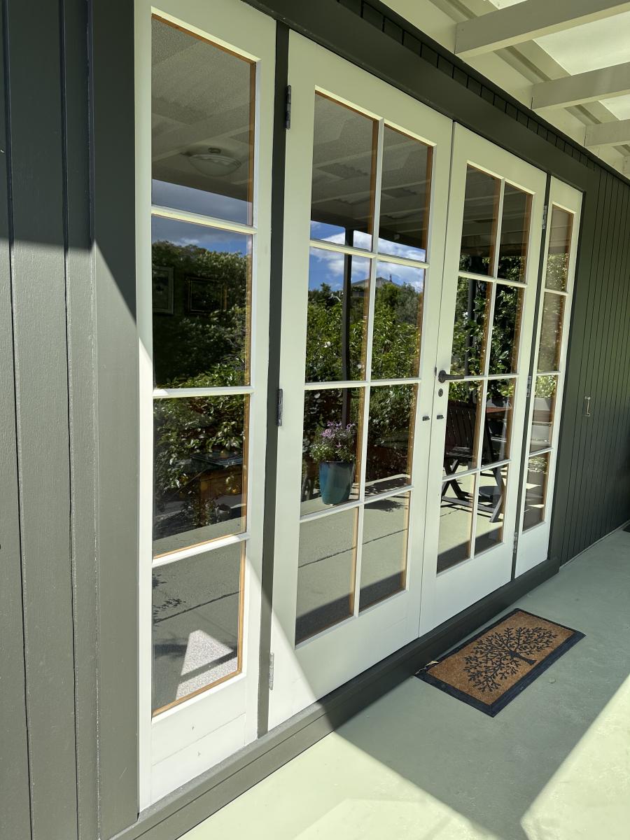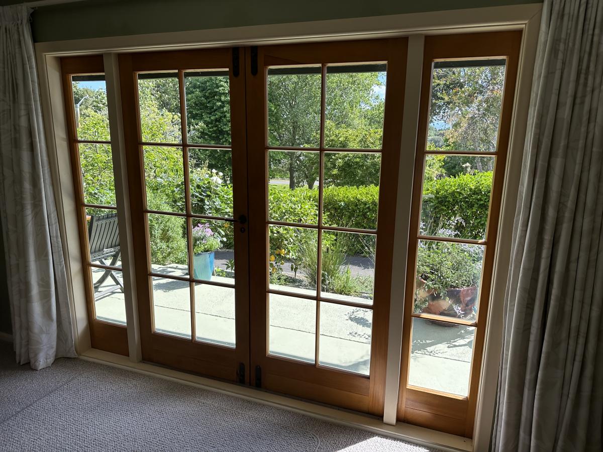 French doors and frame (Fijian Kauri) and 2 windows and frames